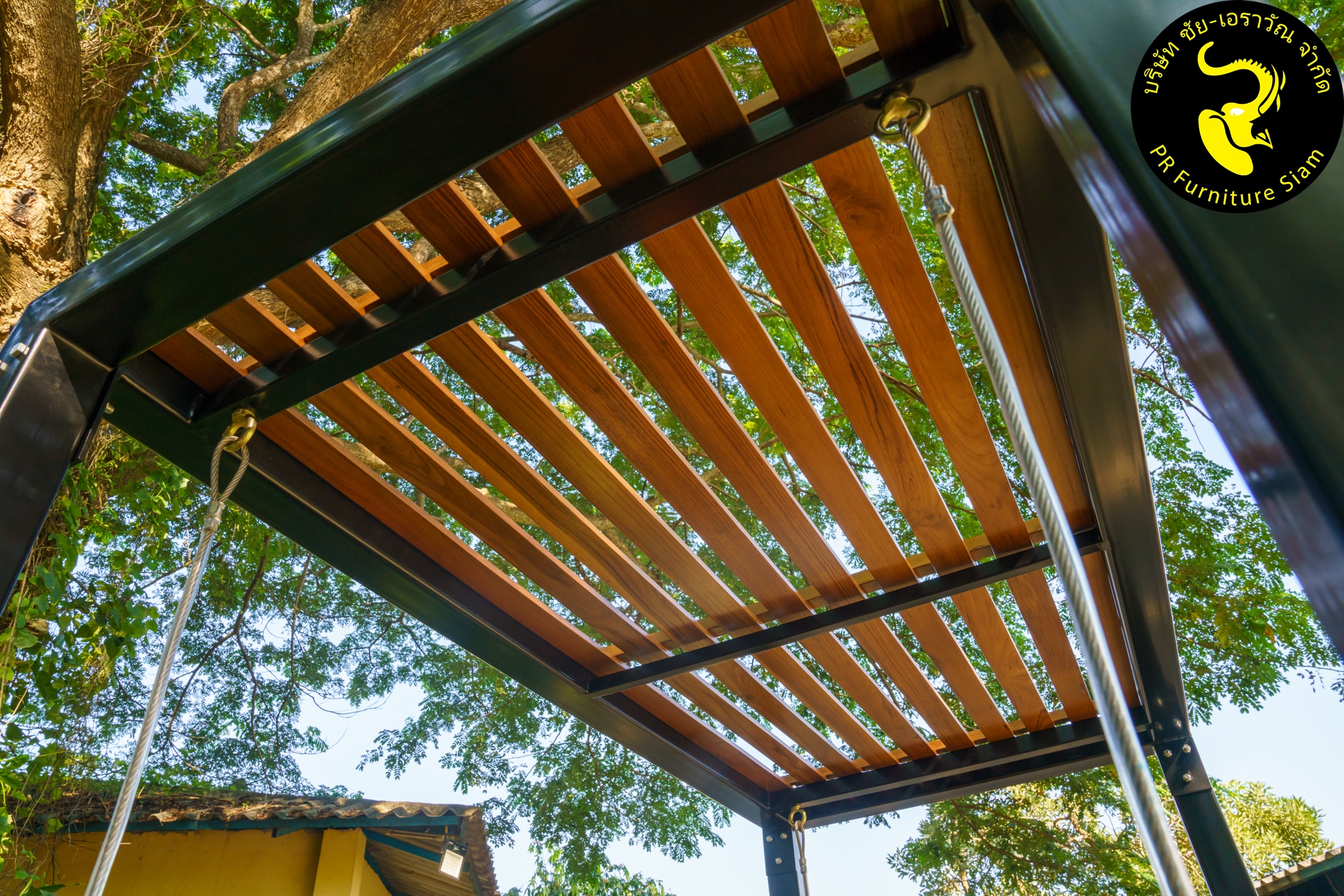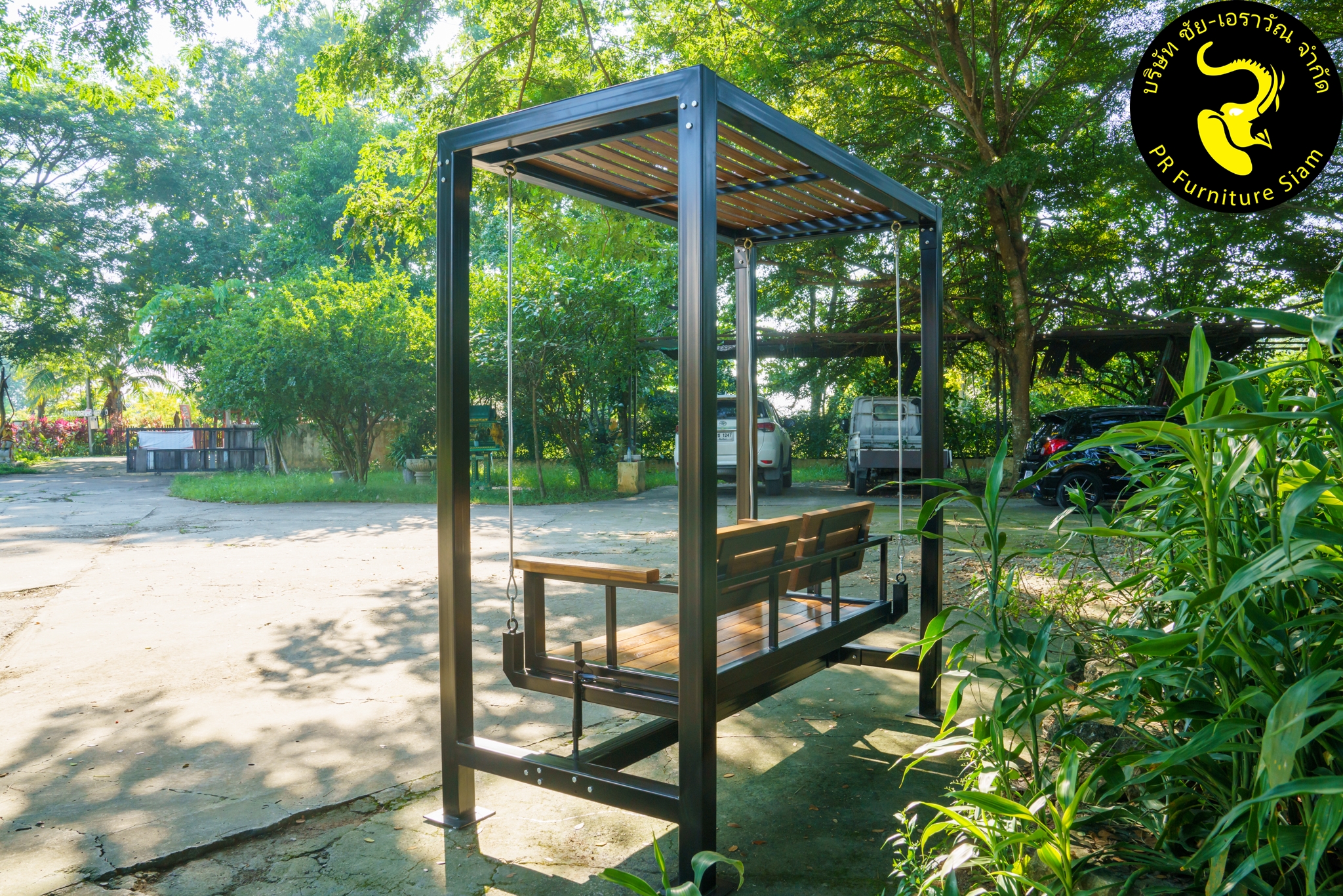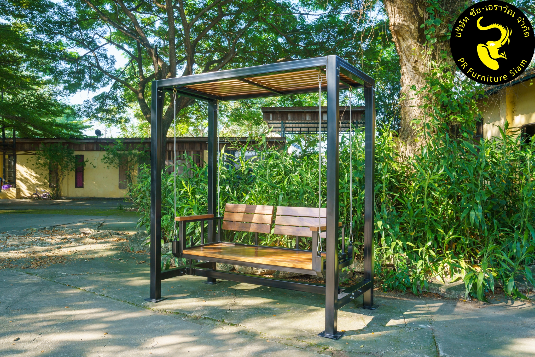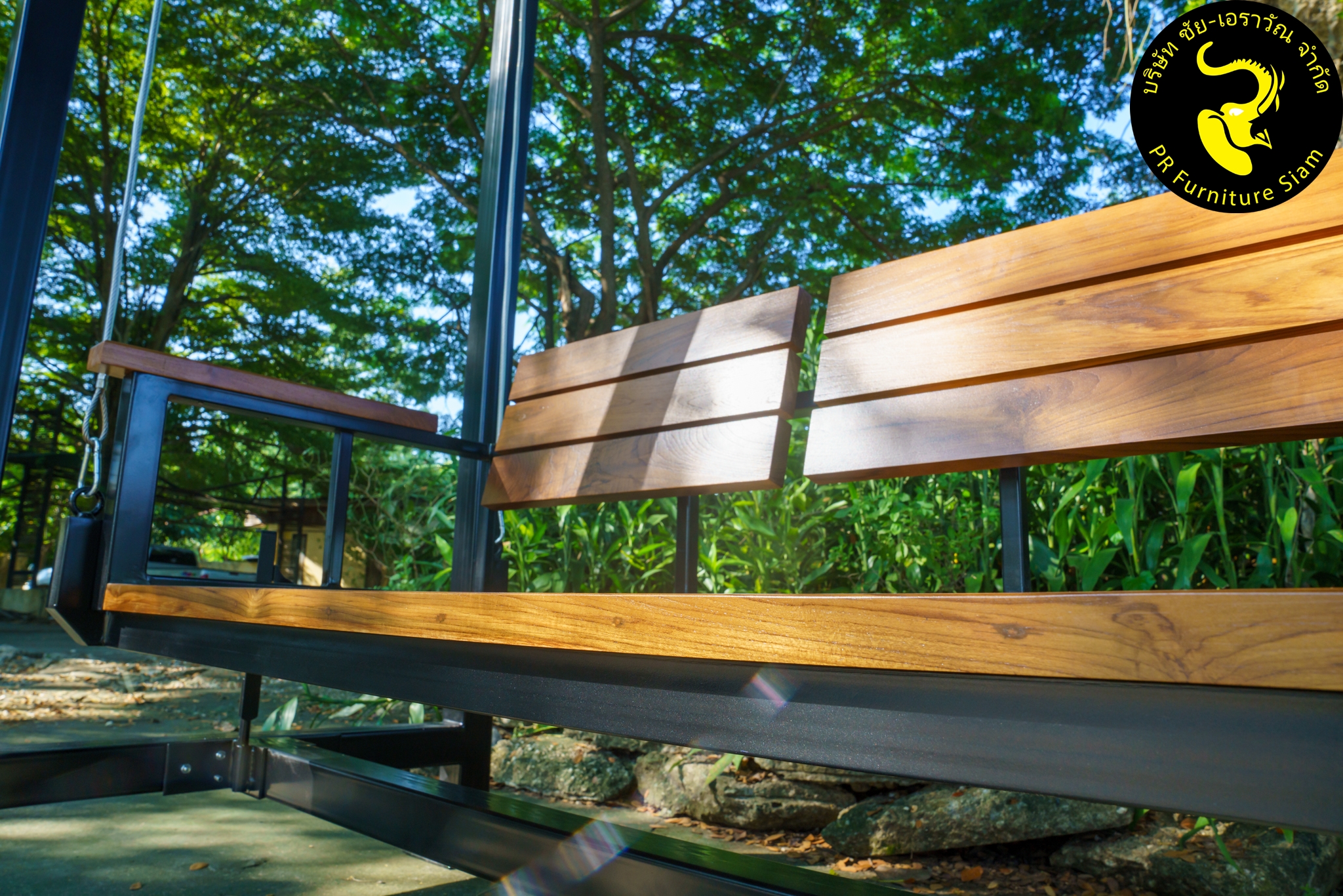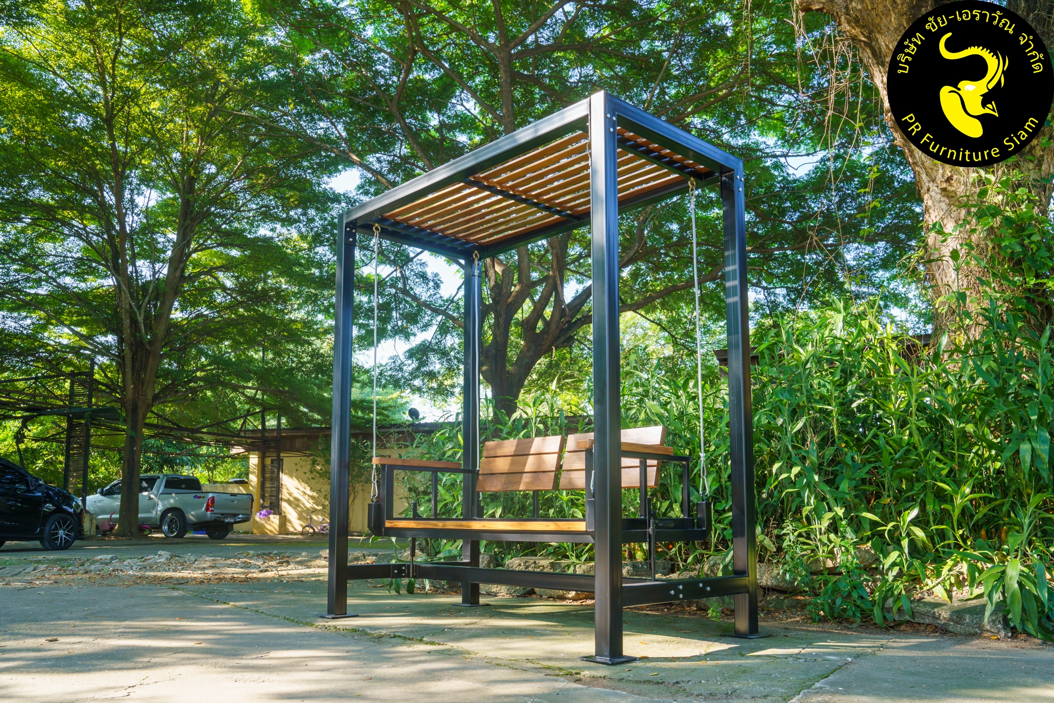ชิงช้าไม้สักเก่าโมเดิร์นพร้อมหลังคาระแนงไม้