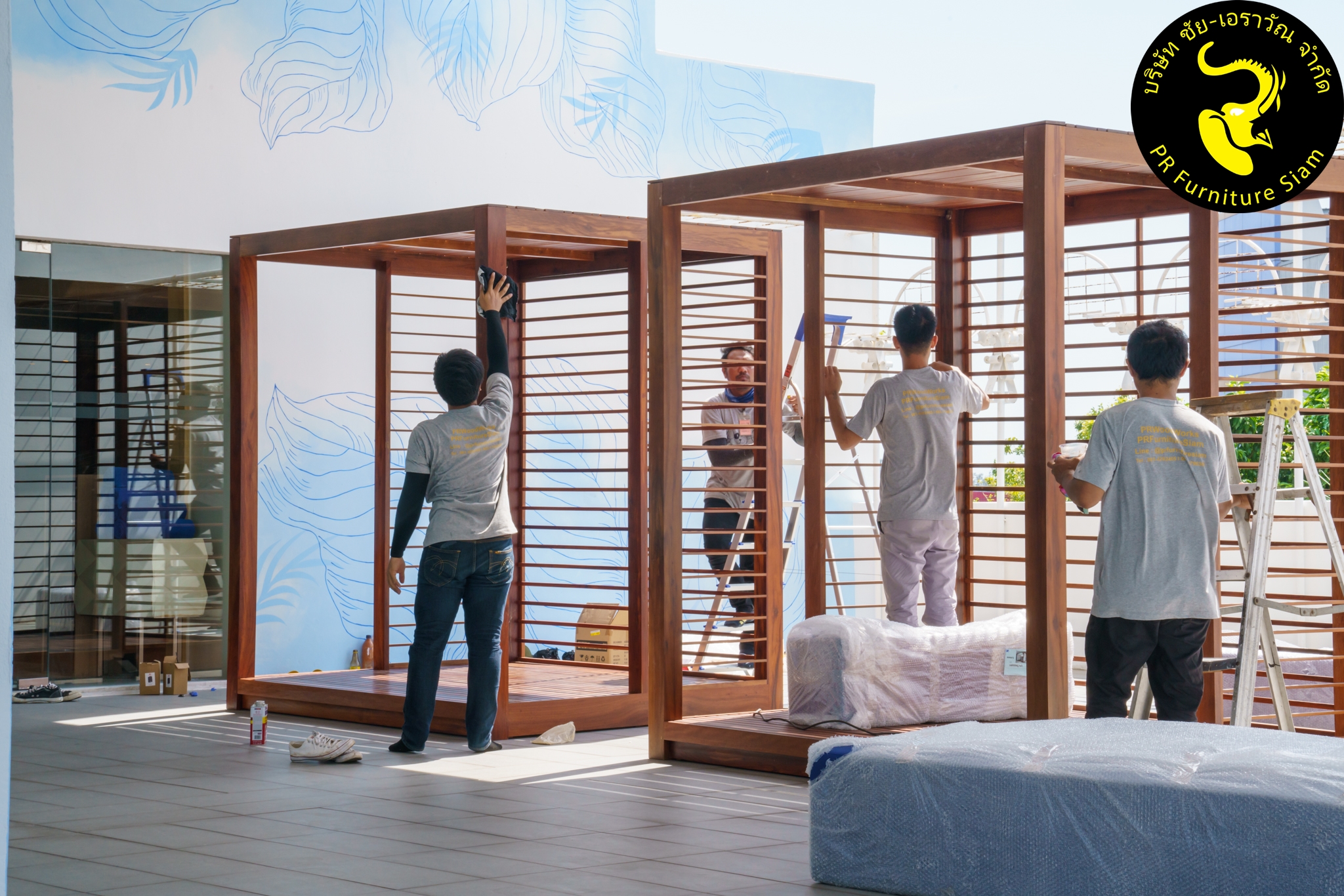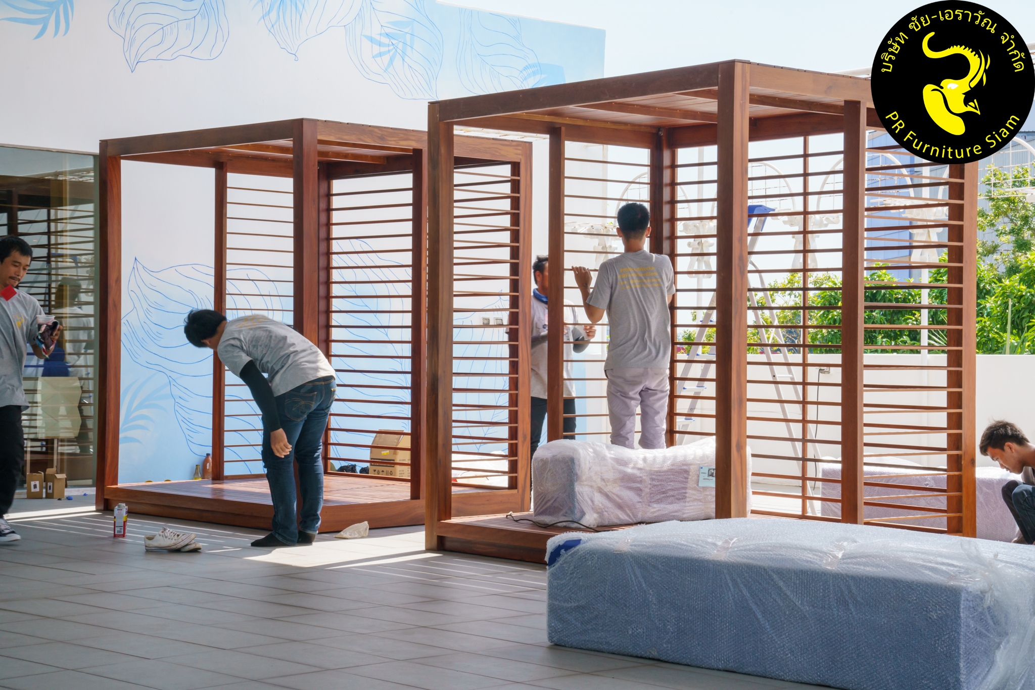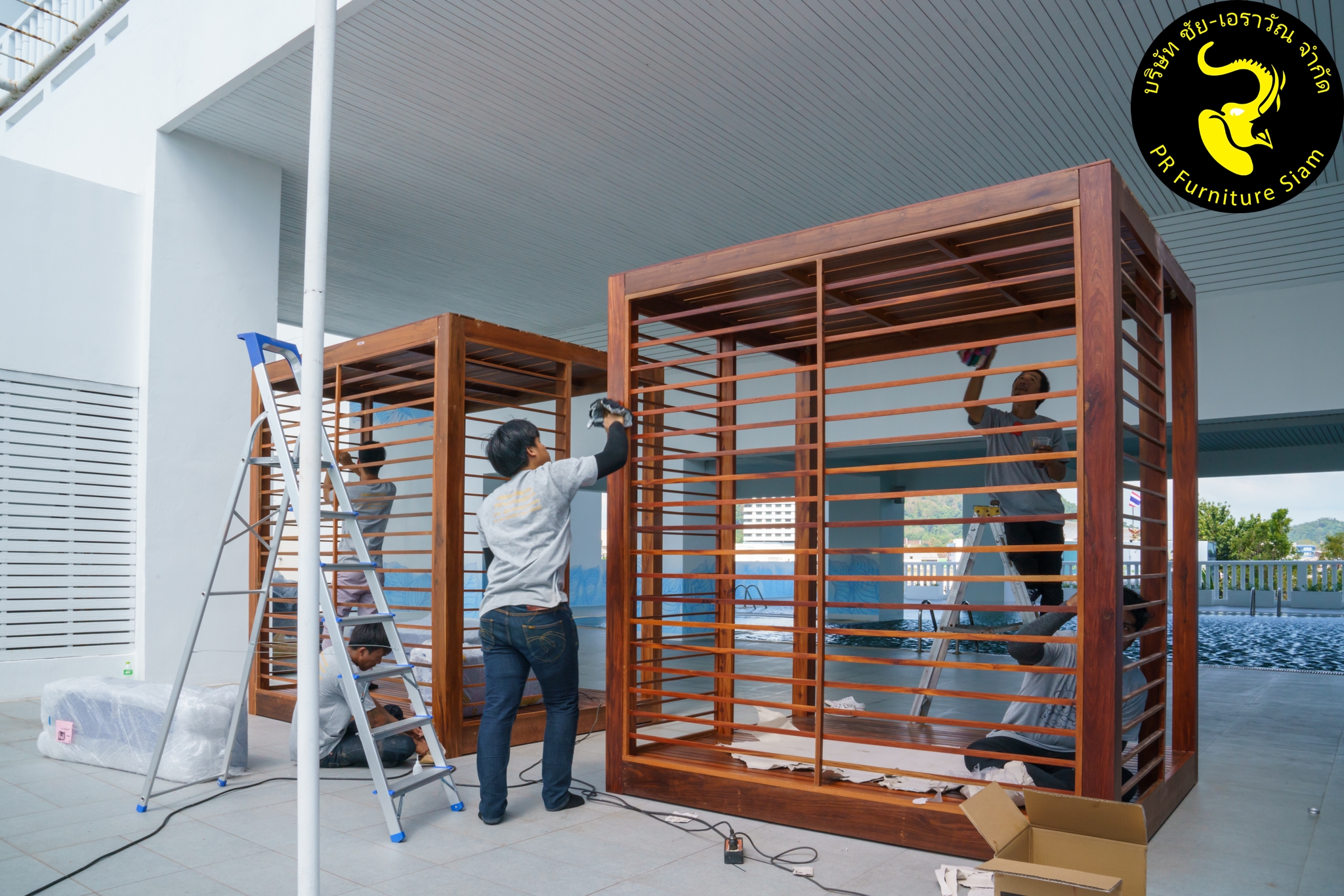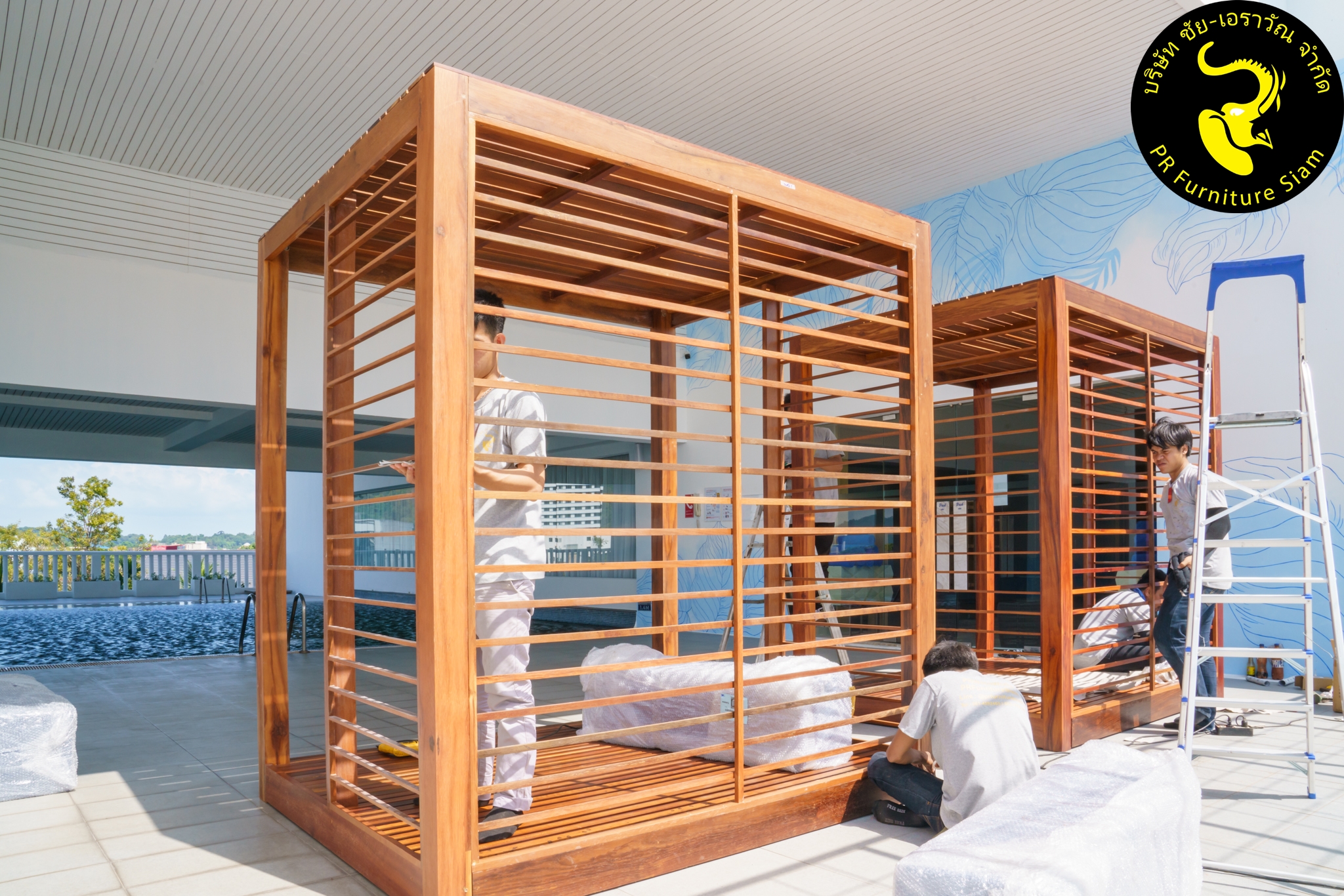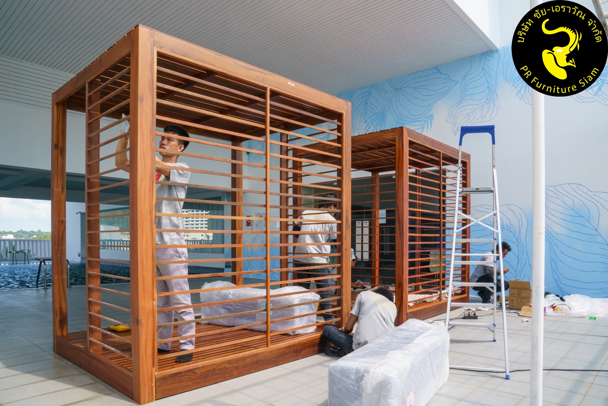 ทีมช่างติดตั้ง คาบาน่าไม้เนื้อแข็ง แบบ Knock Down จำนวน 2 ชุด ให้กับโรงแรม Novotel Phuket City Phokeethra & Ibis Styles Phuket City, อ.เมือง จ.ภูเก็ต