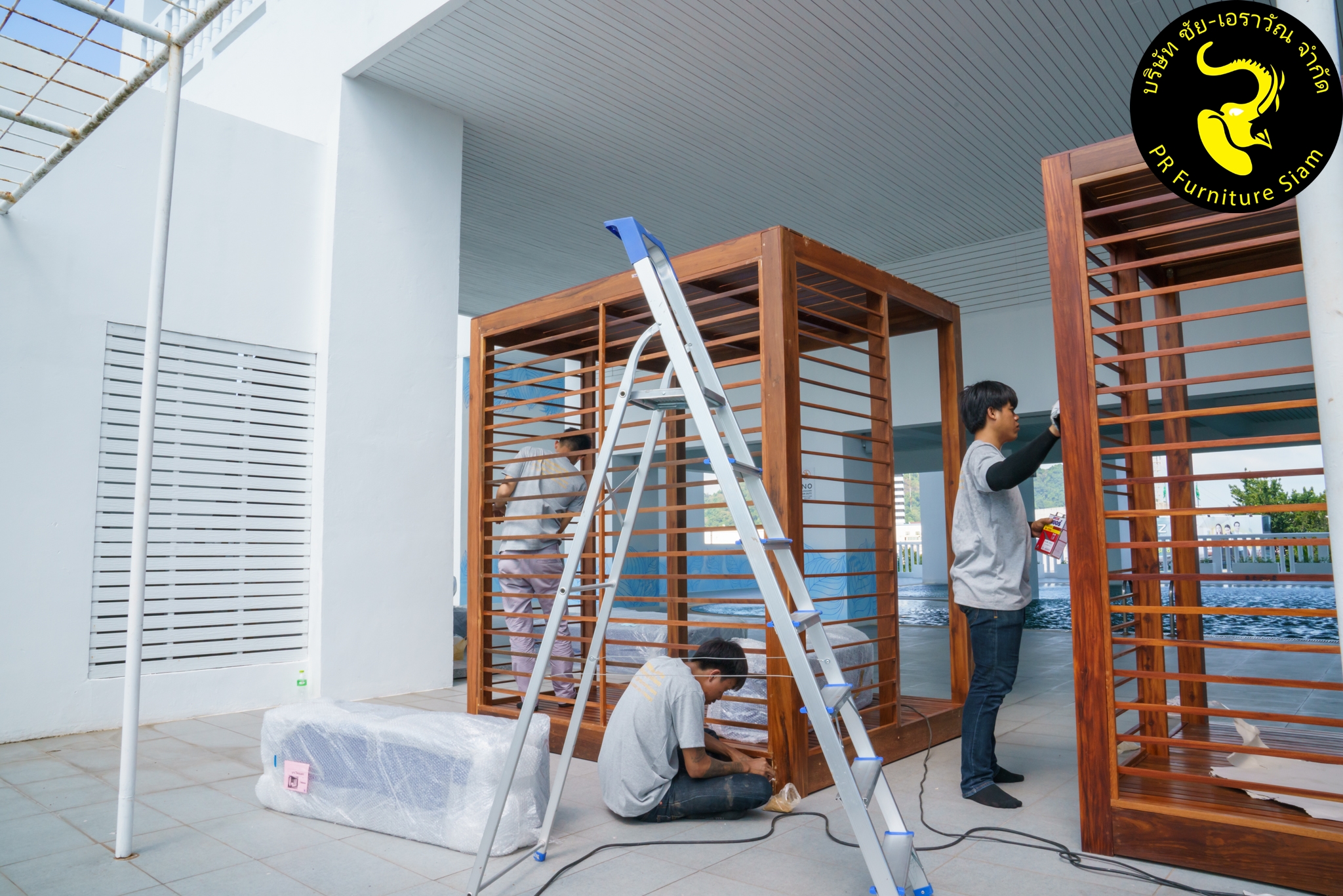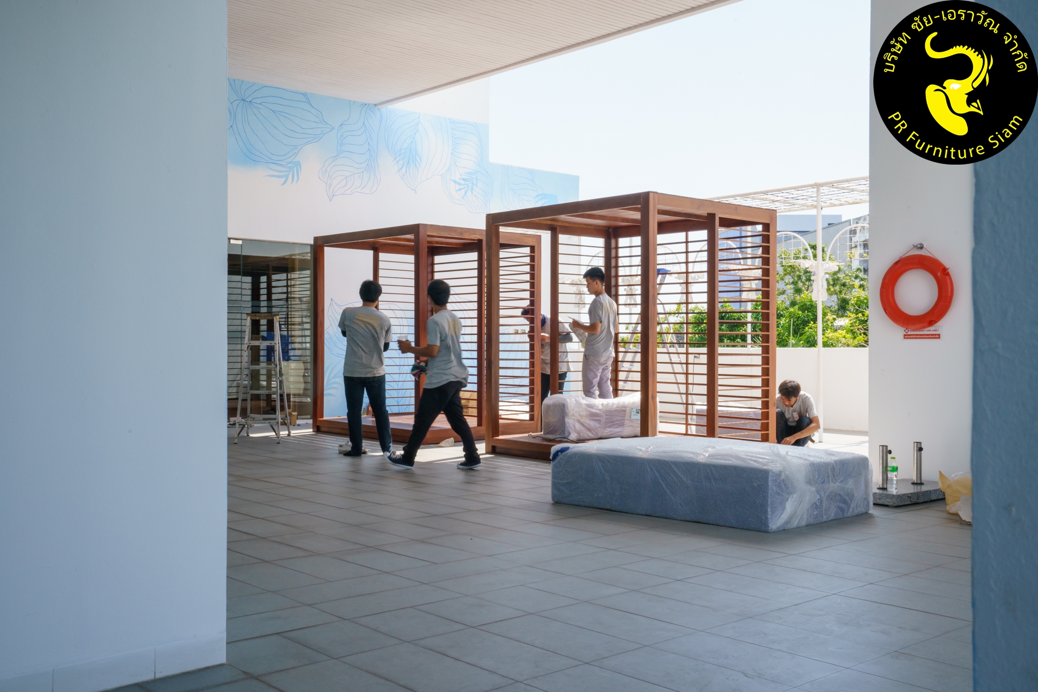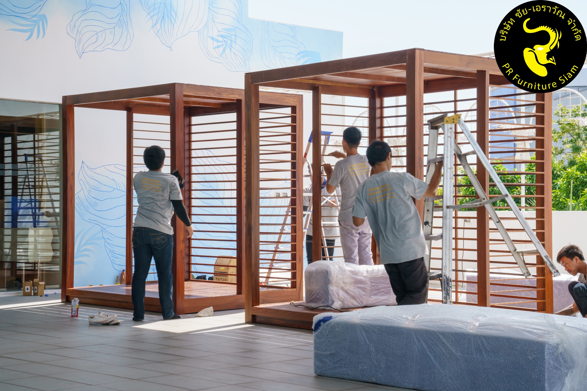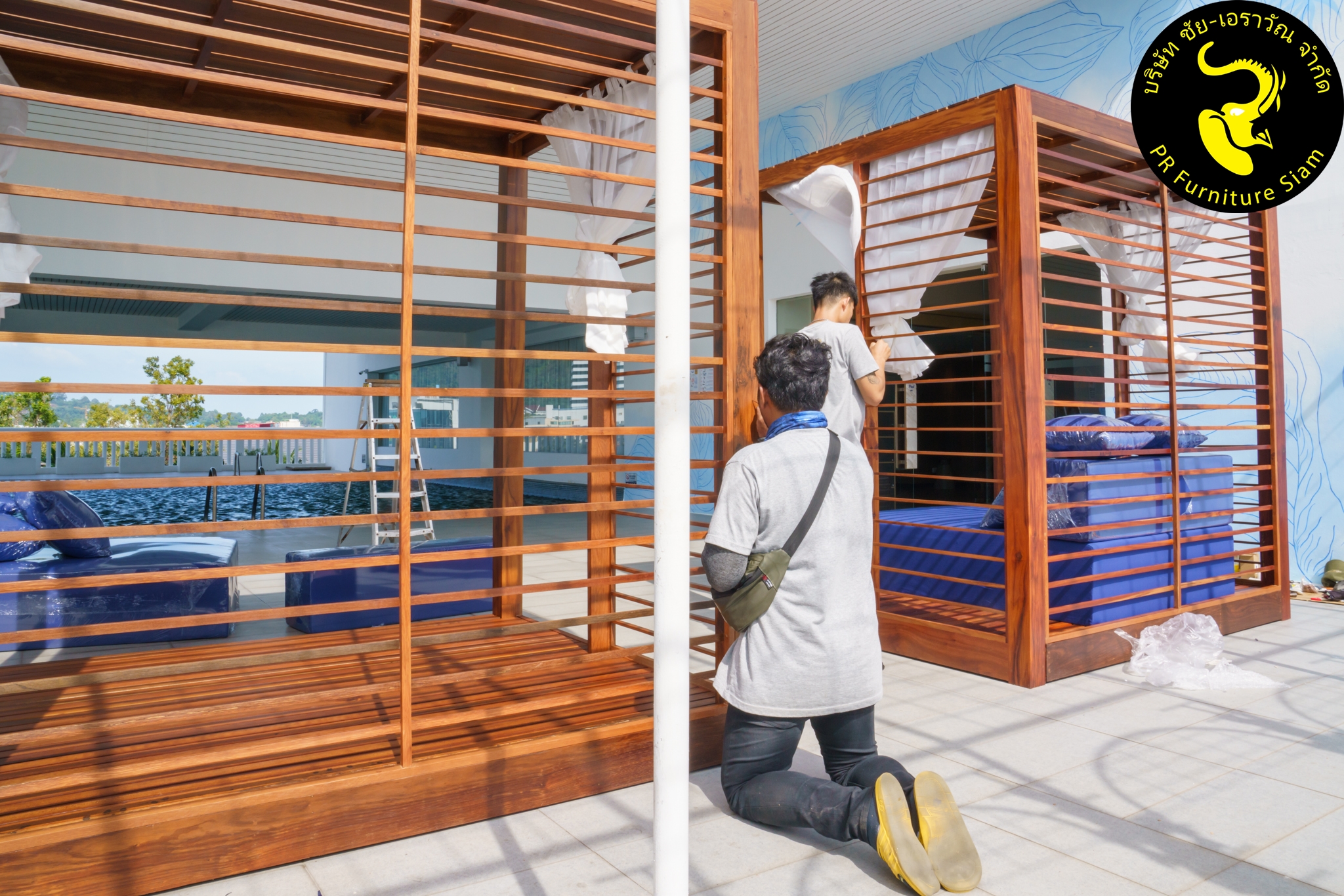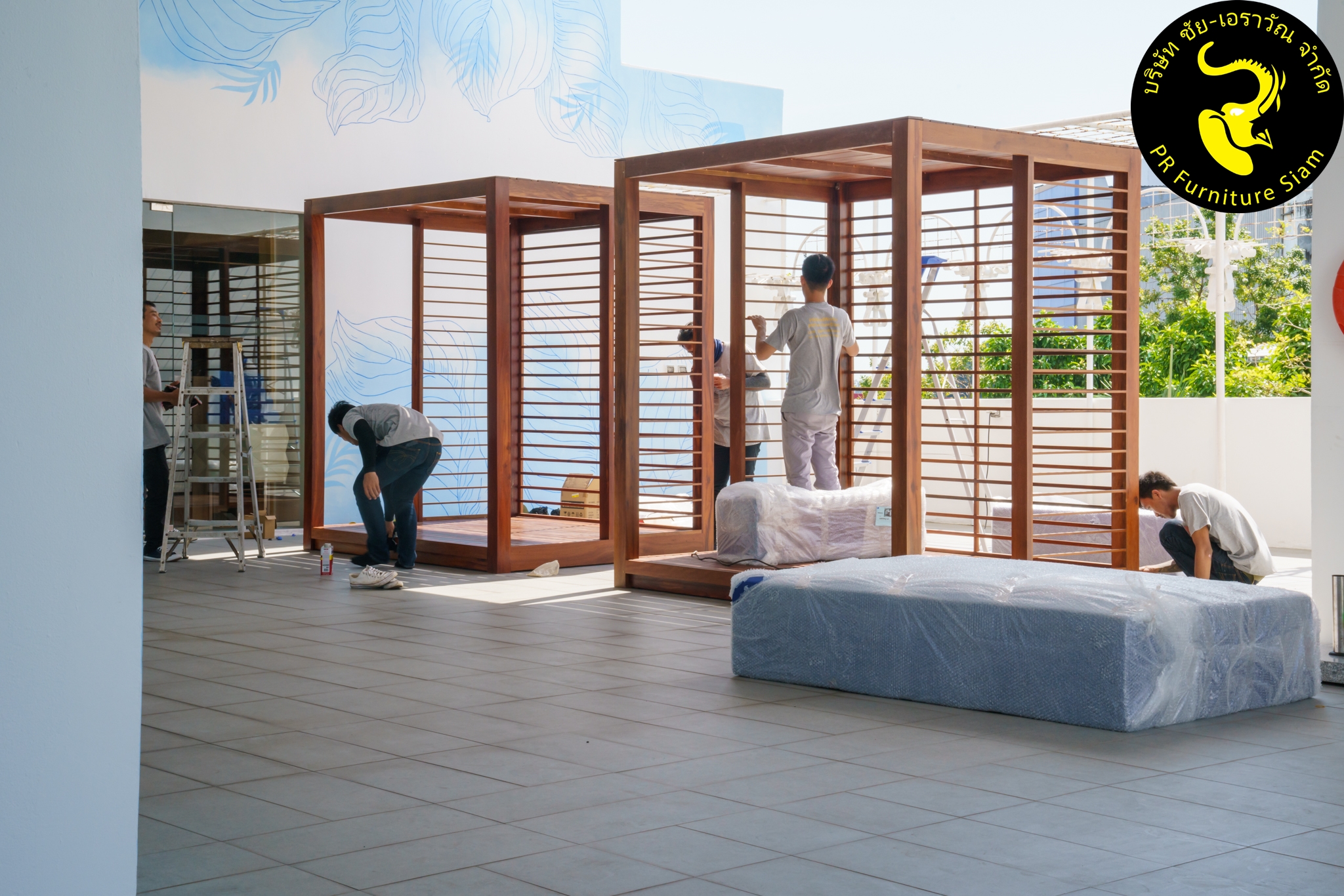 ทีมช่างติดตั้ง คาบาน่าไม้เนื้อแข็ง แบบ Knock Down จำนวน 2 ชุด ให้กับโรงแรม Novotel Phuket City Phokeethra & Ibis Styles Phuket City, อ.เมือง จ.ภูเก็ต