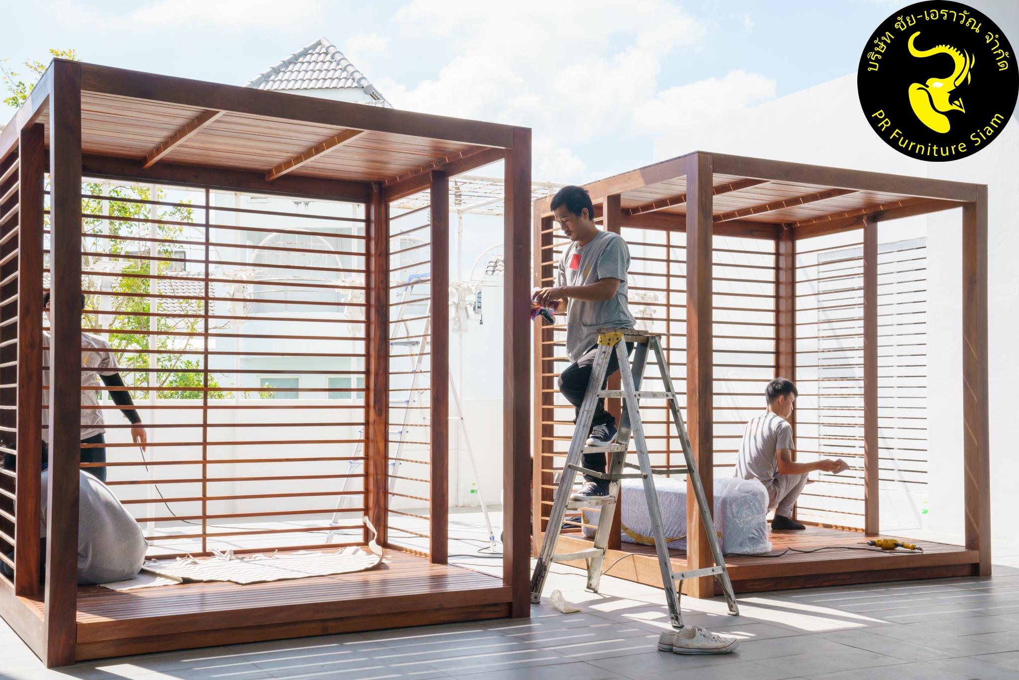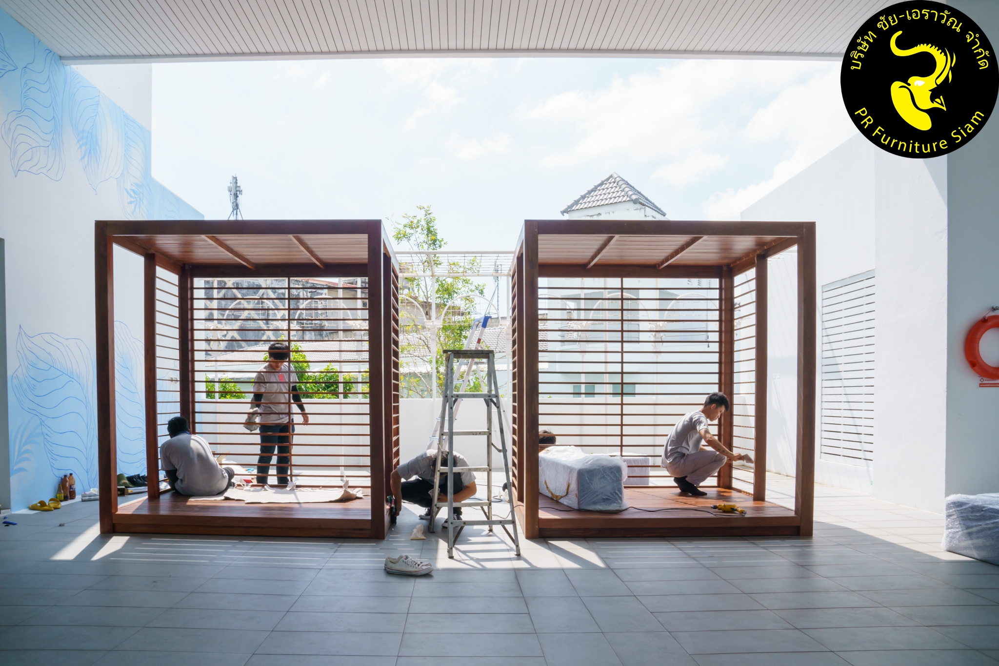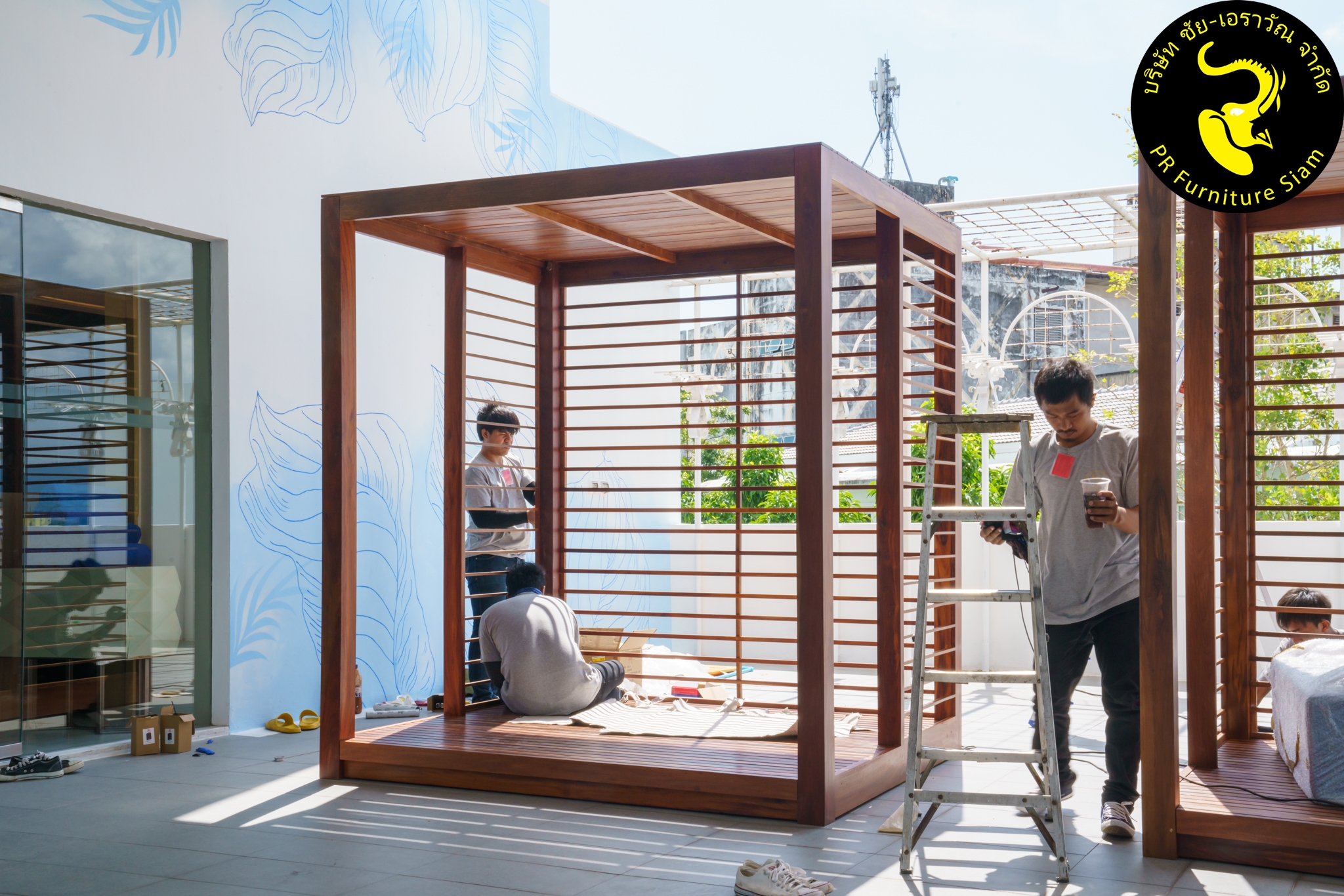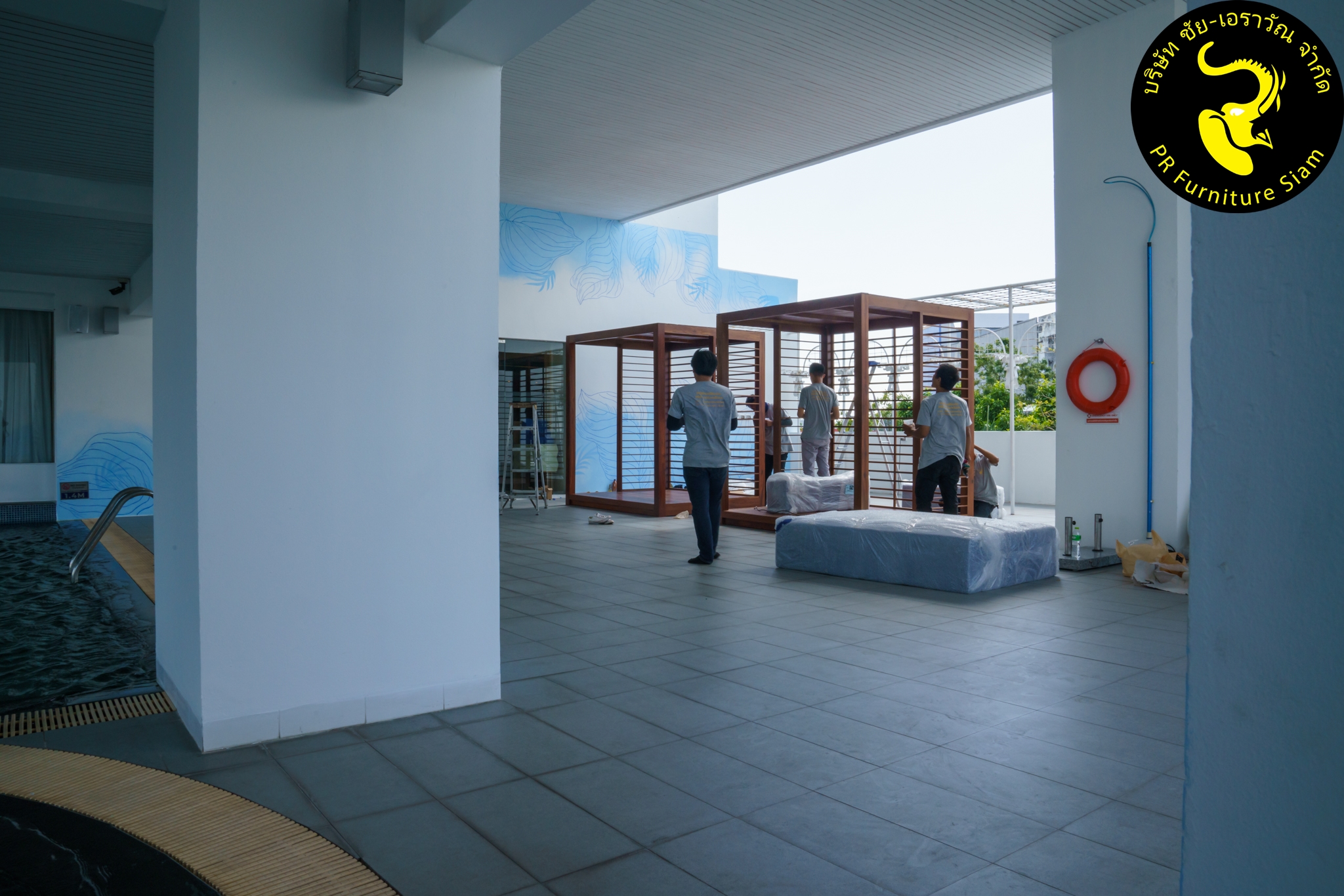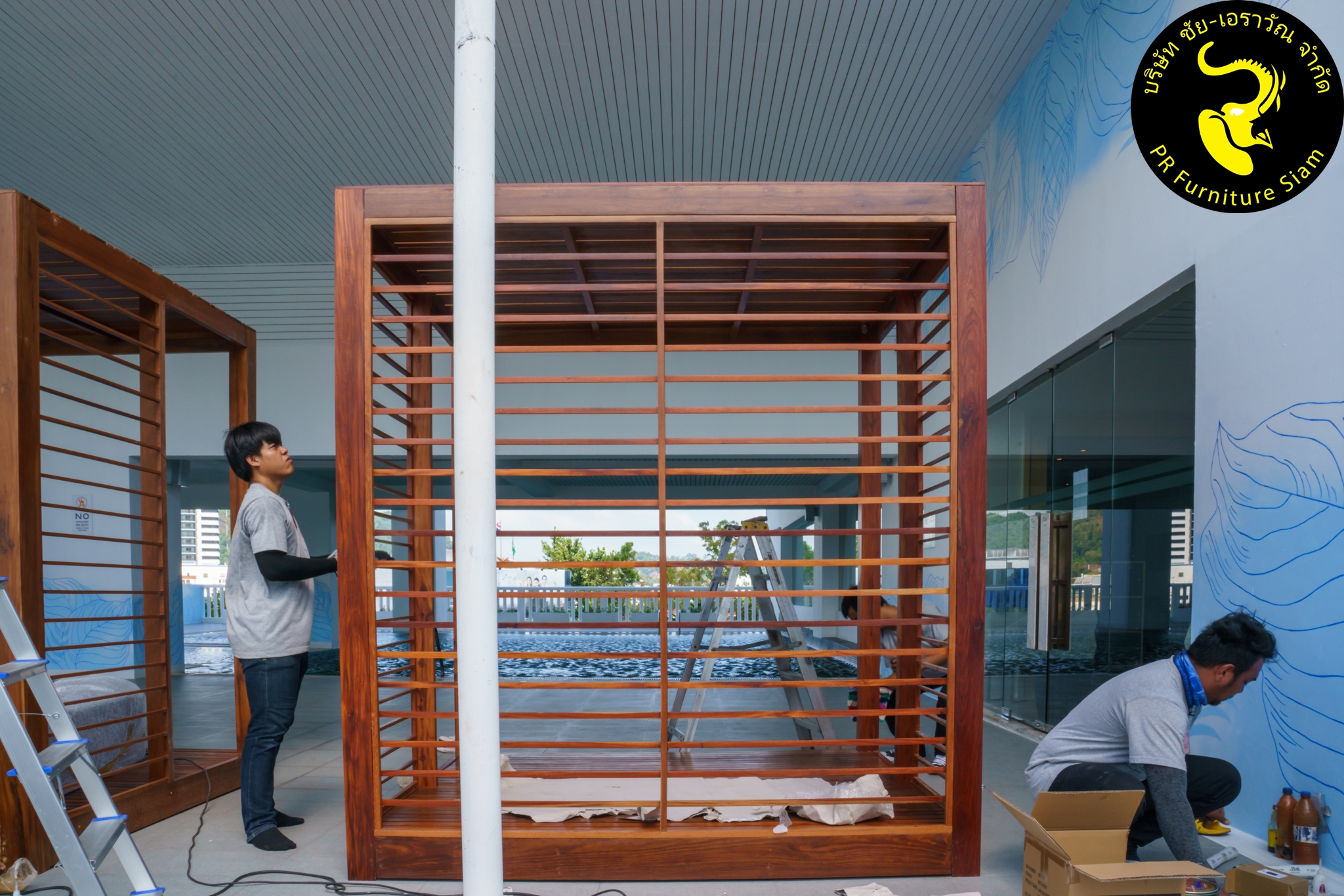 ทีมช่างติดตั้ง คาบาน่าไม้เนื้อแข็ง แบบ Knock Down จำนวน 2 ชุด ให้กับโรงแรม Novotel Phuket City Phokeethra & Ibis Styles Phuket City, อ.เมือง จ.ภูเก็ต