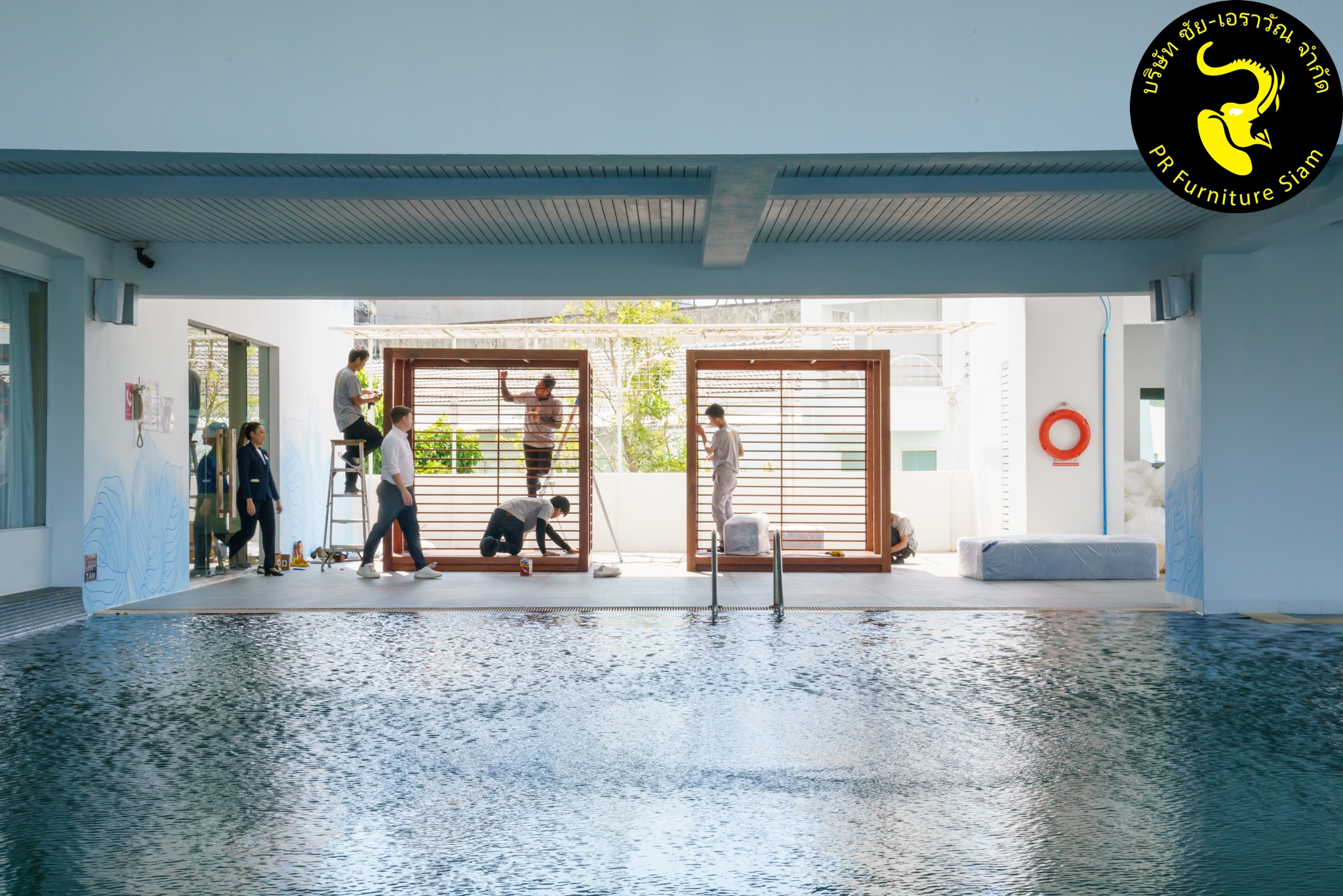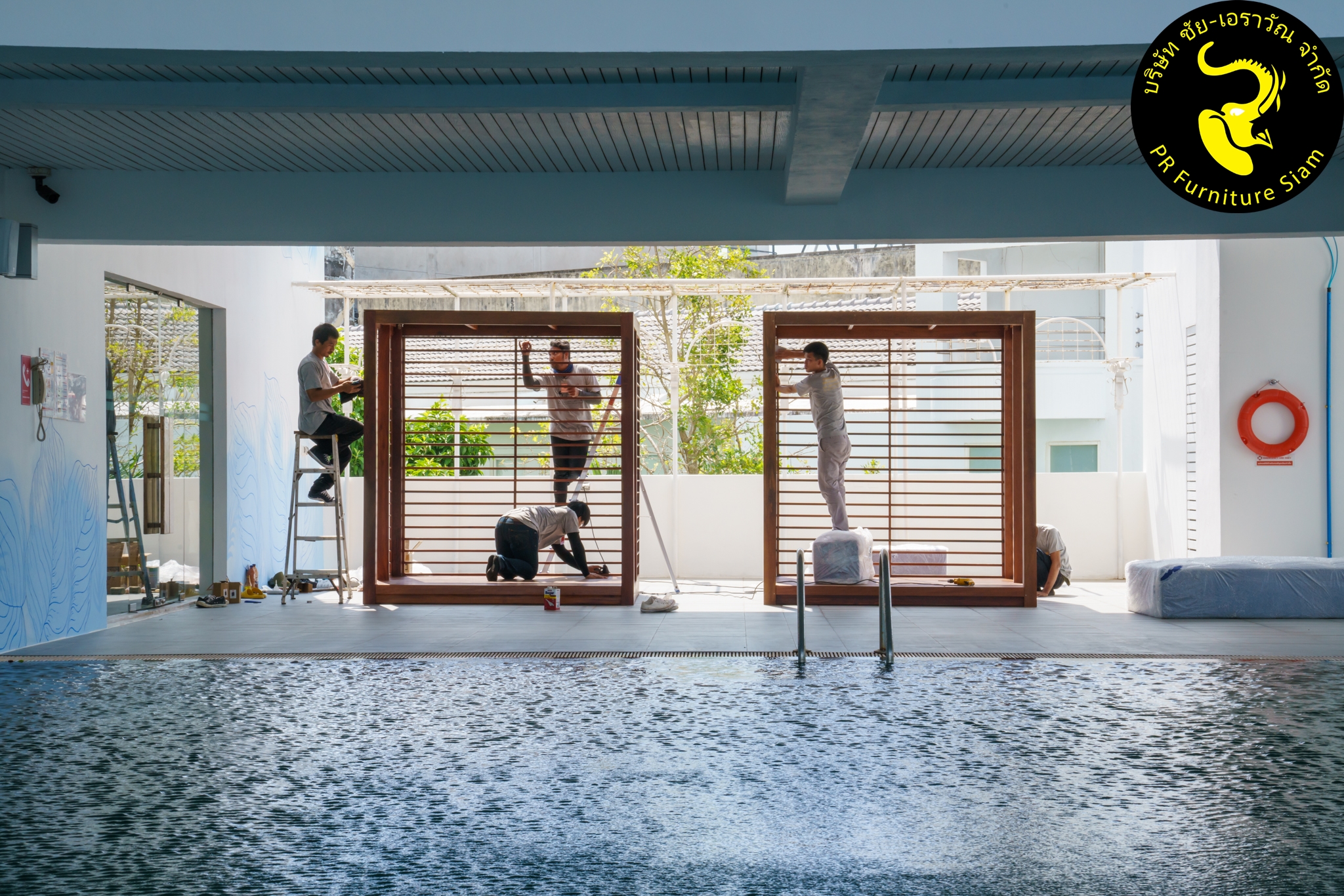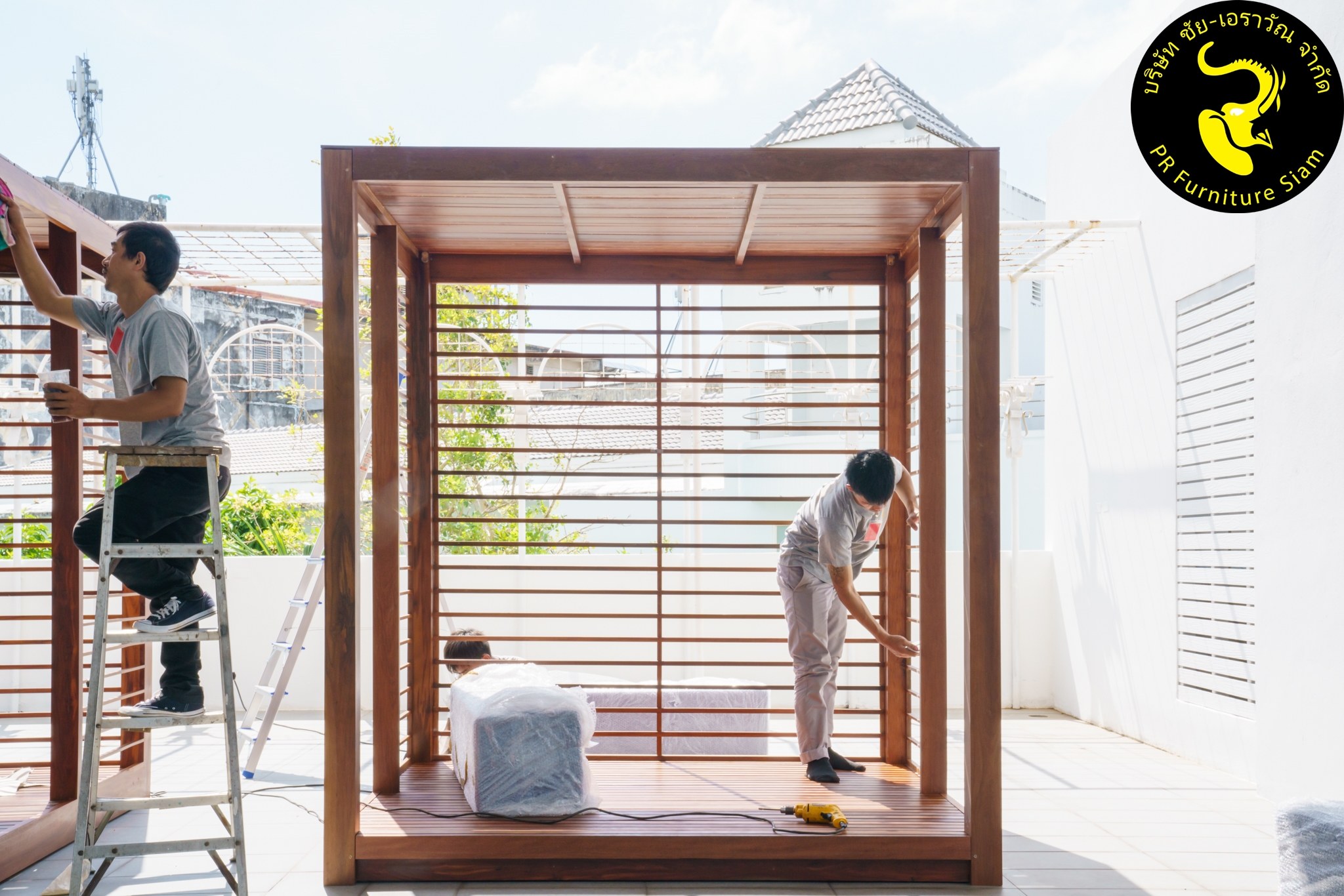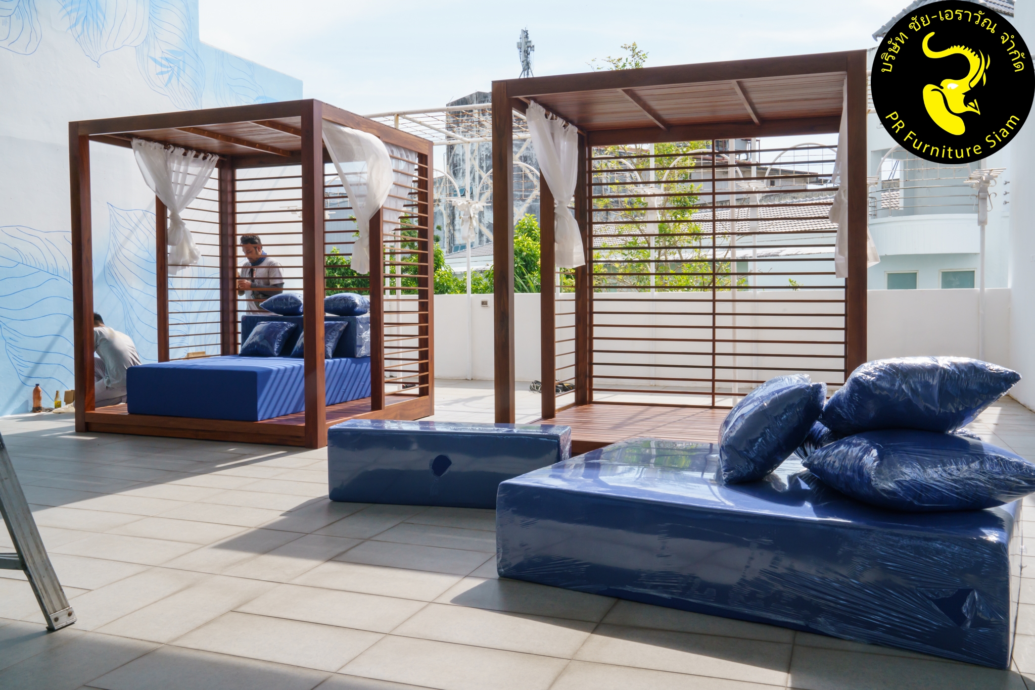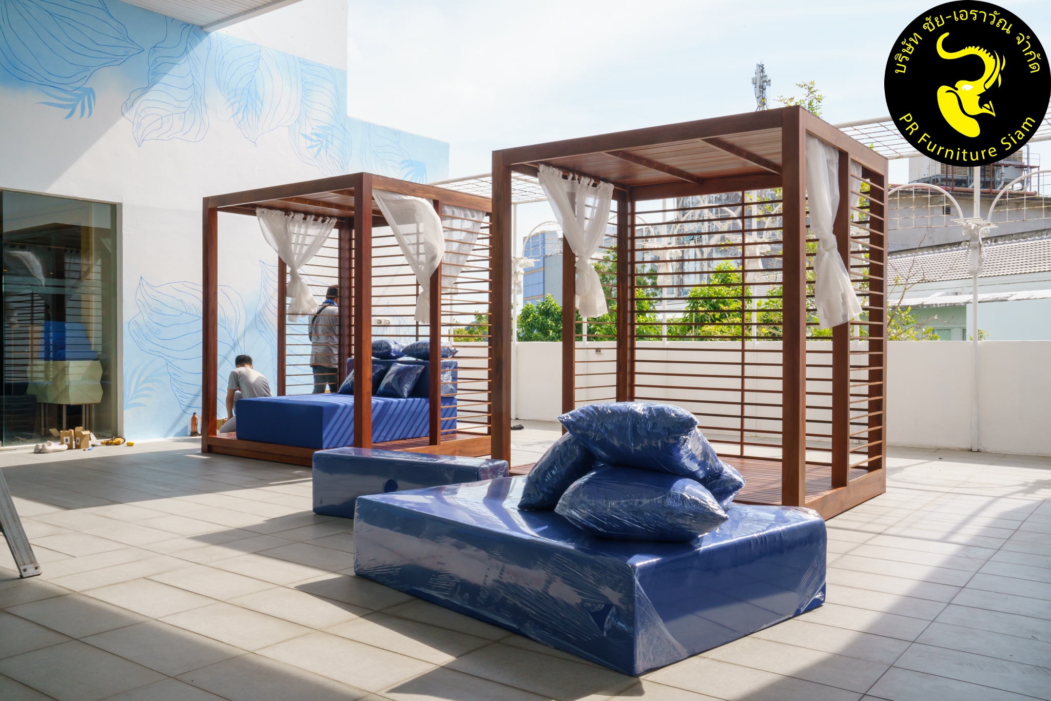 ทีมช่างติดตั้ง คาบาน่าไม้เนื้อแข็ง แบบ Knock Down จำนวน 2 ชุด ให้กับโรงแรม Novotel Phuket City Phokeethra & Ibis Styles Phuket City, อ.เมือง จ.ภูเก็ต
