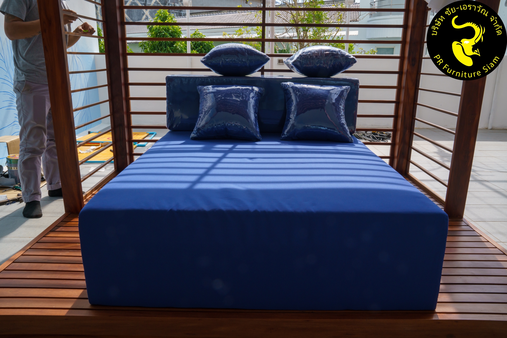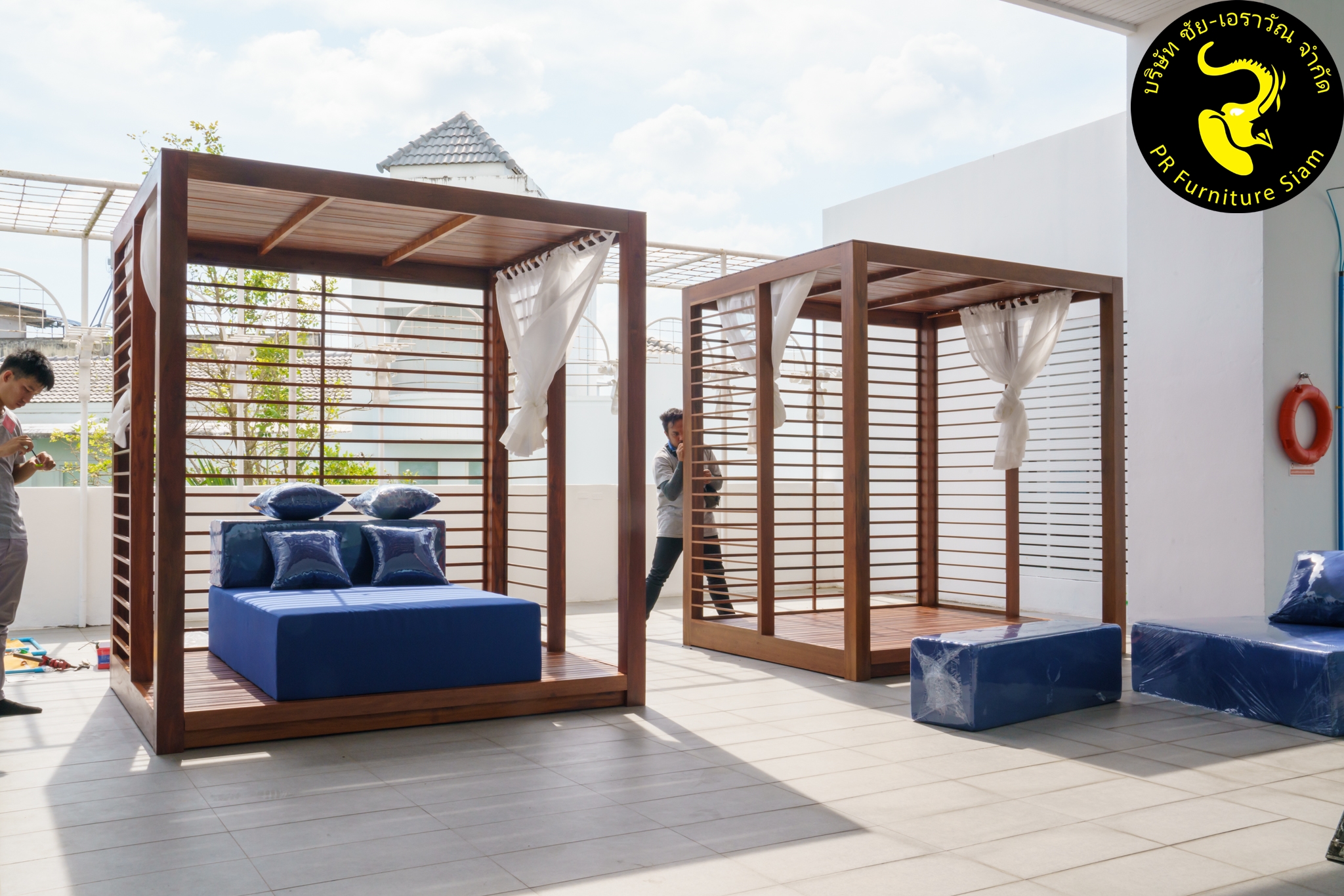 คาบาน่าไม้เนื้อแข็ง แบบ Knock Down ออกแบบมาเพื่อยกระดับการตกแต่งพื้นที่กลางแจ้งของโรงแรมและรีสอร์ท โดยเฉพาะเหมาะสำหรับงานริมสระน้ำหรือสวนภายนอก ด้วยขนาด W180 x L220 x H240 cm. คาบาน่านี้ผลิตจากไม้เนื้อแข็งเก่า (ไม้แดง/ไม้เต็ง/ไม้รัง/ไม้เปา) คุณภาพสูง ขัดเรียบ และเคลือบด้วย Deck Stain สีใสกึ่งด้านเพื่อความทนทานต่อสภาพอากาศ ทีมช่างของเราติดตั้งสินค้าชิ้นนี้ให้กับ โรงแรม Novotel Phuket City Phokeethra & Ibis Styles Phuket City อ.เมือง จ.ภูเก็ต ด้วยความพิถีพิถันตั้งแต่การขนส่งจนถึงการติดตั้งหน้างาน
