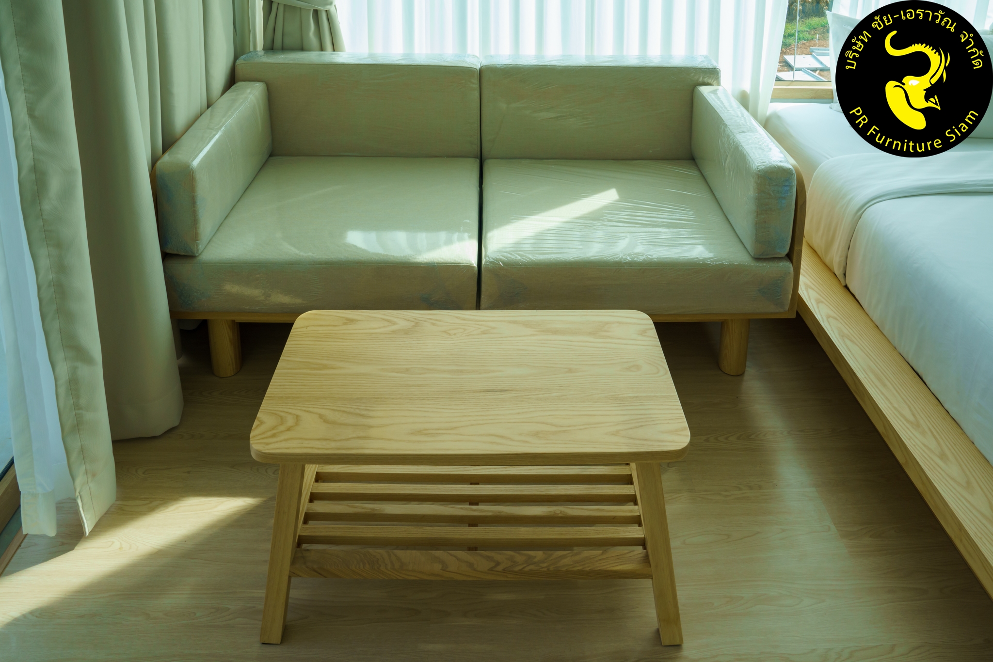 2. โต๊ะกลางไม้แอช พร้อมชั้นวางไม้ระแนง ขนาด: D40 x L80 x H45 cm. จำนวน 1 ชุด